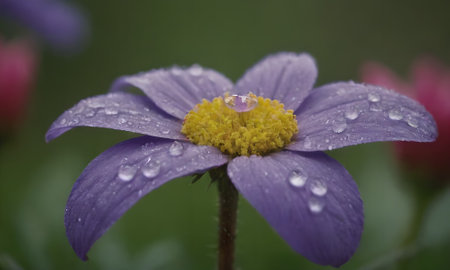 Purple flower with raindrops, close-up, macro photography
