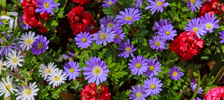 Purple and white daisies spring