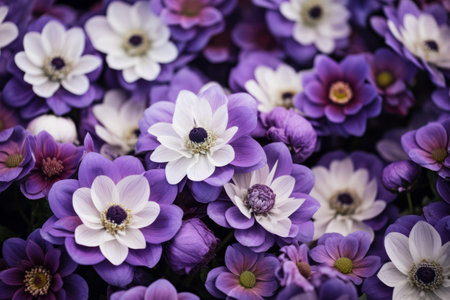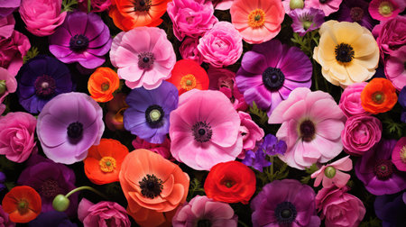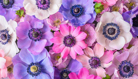 anemone full frame colorful pink and purple flowers background top view flat lay