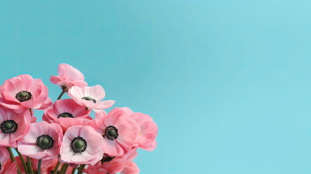 Bouquet of pink anemones on a blue background.
