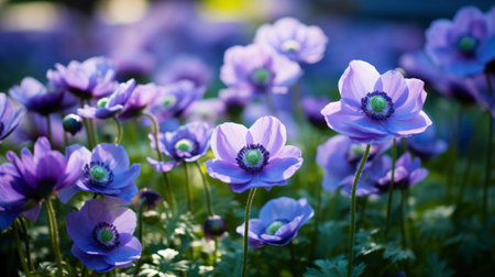 A garden filled with blooming anemones, creating a vibrant and lush floral background