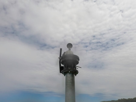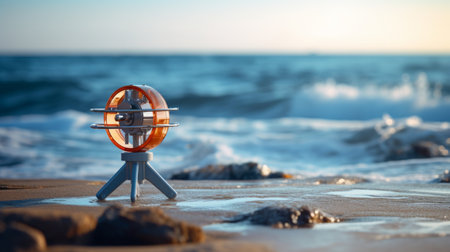 Coastal weather station with instruments and ocean view on cloudy day. That the image is generated using AI.