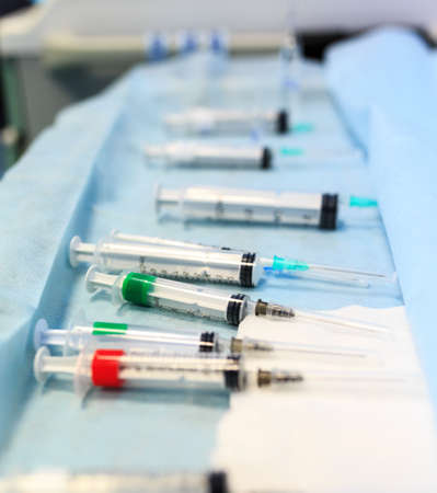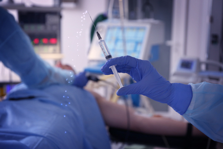 Doctor's hand with syringe in operating room