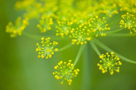 Abstract inflorescence dill close-up.Tiny focus.Shallow depth of field