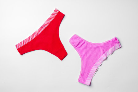 Set of cotton string womens panties on white background