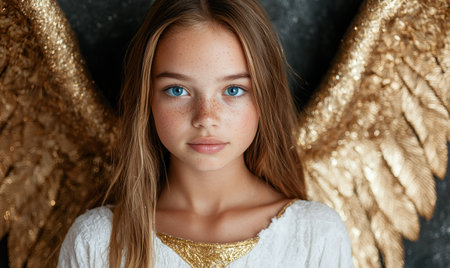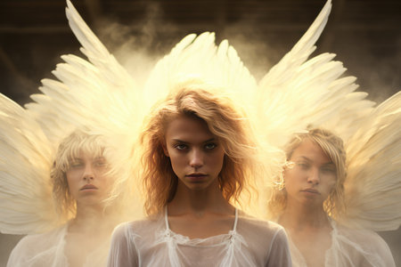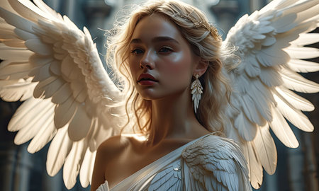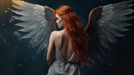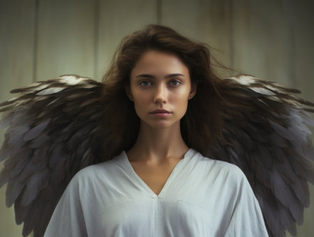 Fantasy portrait of a beautiful young woman with angel wings. Fantasy.