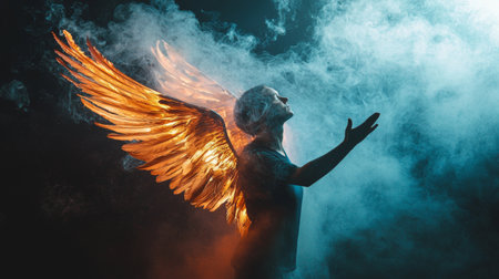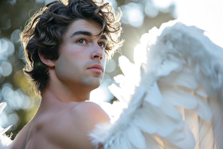 Radiant Angel handsome male wings. Hope beauty. Generate Ai