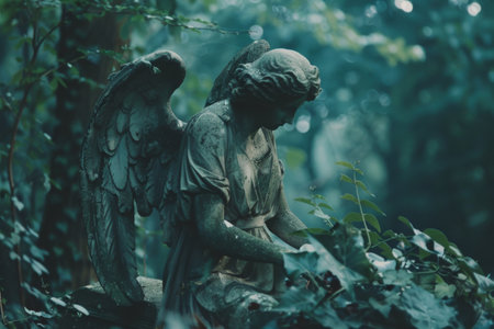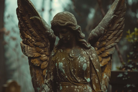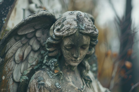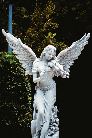 Statue. Sculpture. Portrait of angels with wings. Monumental cemetery.