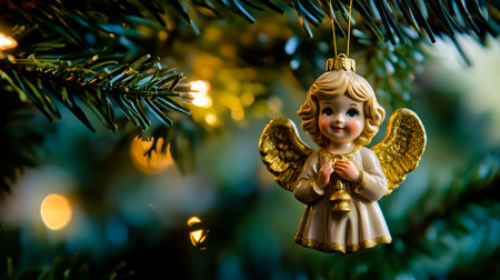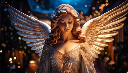 Majestic Christmas angel adorned with sparkling gown and detailed wings in festive setting