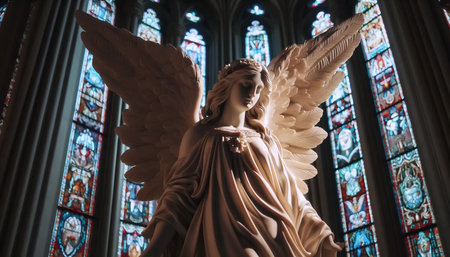 Portrayed in a mesmerizing fresco, the angel exudes tranquility with soft features and gentle expression. Its wings, adorned with intricate details, evoke a sense of peace and spirituality.
