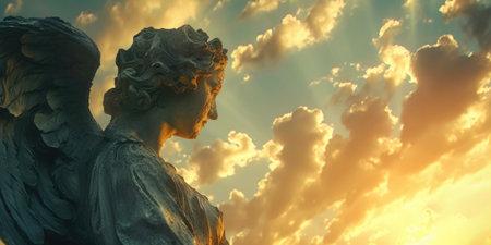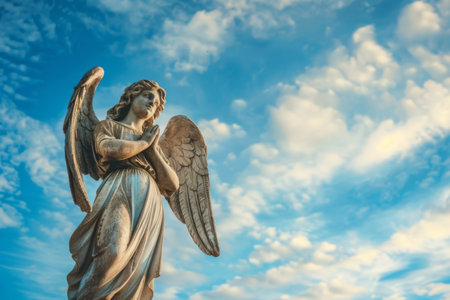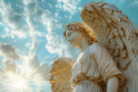 Angel statue against a sunny sky