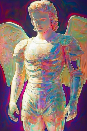 Digital illustration of a statue of an angel with wings. Digital painting.