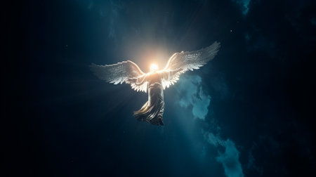 Silhouette of a angel in the sky. Generative Ai technology