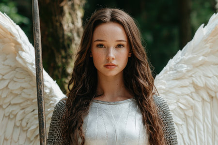 Portrait of a beautiful young woman with angel wings. Fantasy.
