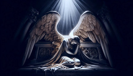 Angel statue on a dark background with copy space for your text.generative ai