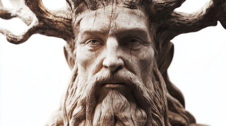 figure of Vili is presented with striking realism highlighting his detailed face flowing beard and imposing antlers embodying the essence of Scandinavian mythology.