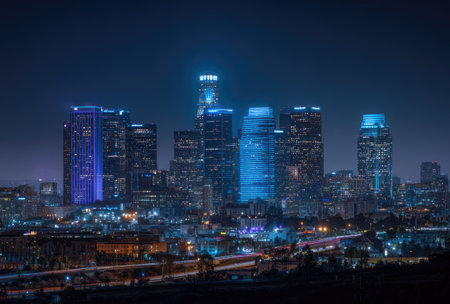 Los Angeles,California,usa. 2016/07/22:scenic view of Los Angeles skyscrapers at night,California,usa.