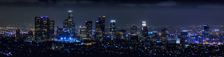 Panoramic aerial view of Los Angeles at night, California, USA