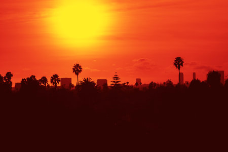 Orange sunset in Los Angeles, California