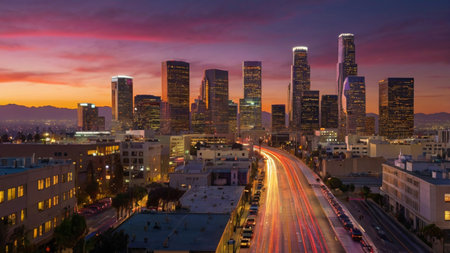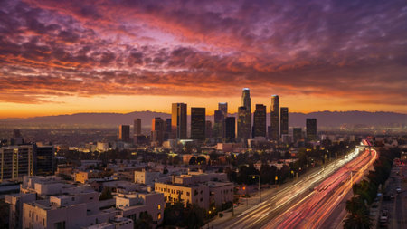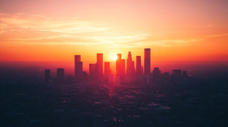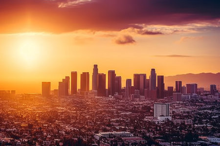 Cityscape of Los Angeles at sunset California United States Skyline of Los Angeles at sunrise California USA AI generated