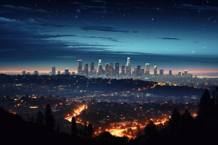 Beautiful cityscape view of Los Angeles at night from Griffith Observatory with lights and shine of stars in the USA