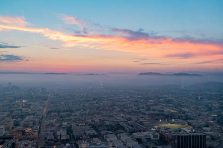 Aerial view of Los Angeles at sunrise in California