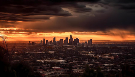 Los Angeles skyline during a mesmerizing sunset AI generated