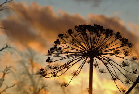 Wild flower silhouette on sunset background