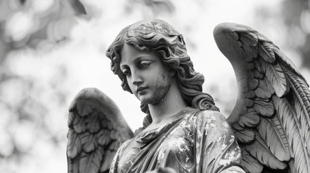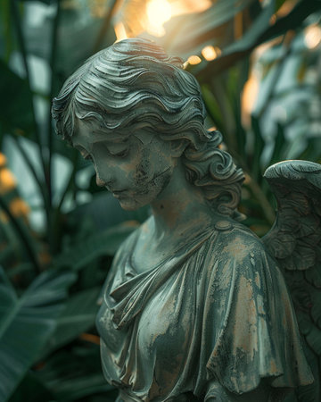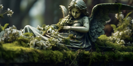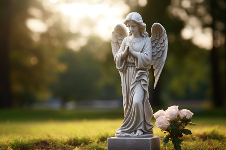 Serene angel statues guard historical monuments in peaceful cemetery landscapes