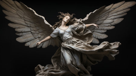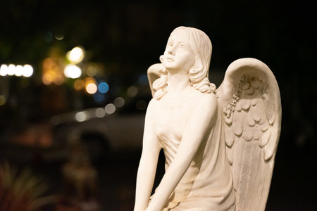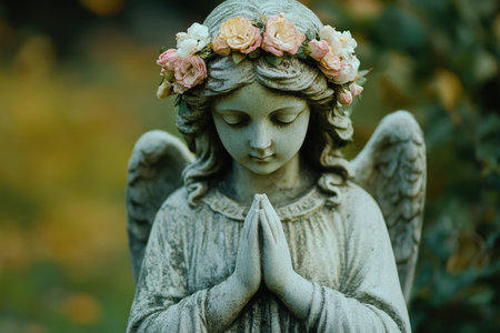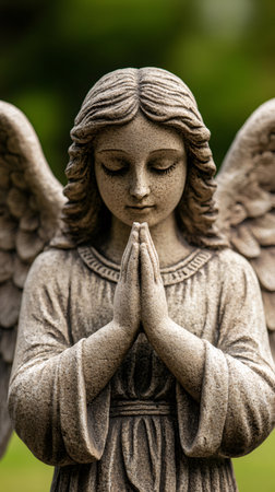 Angel statue made of stone with hands clasped in prayer, embodying faith and spirituality