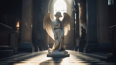 a radiant angel statue surrounded by glowing candles in a sacred setting radiant, angel, statue, glowing, candles, sacred, setting, heaven, religion --ar 9:16 --quality 2 --profile ooj6fpf --v 6.1 Job ID: 91467559-3667-47bd-ba98-125de5fc1e8f