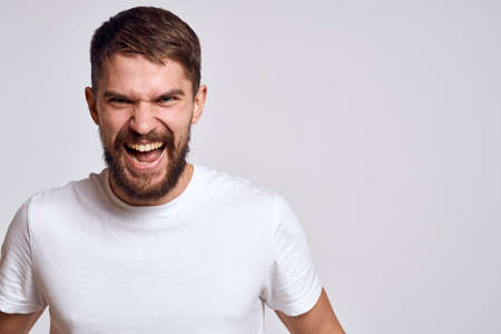 emotional man in a white t-shirt expressive look discontent Lifestyle