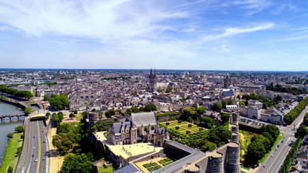 Angers and Maine river aerial panoramic view. Angers is a city in Loire Valley, western France.