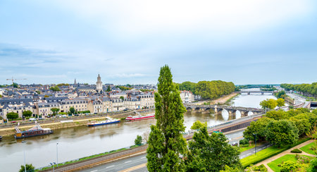 Panorama of the town of Saumur on the banks of the Loire River, in France in the Loire Valley