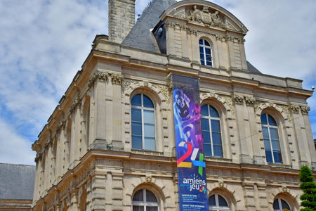 Reims France March 29, 2021 Facade of a building located in Reims, a city in the Grand Est region of France and one of the oldest in Europe