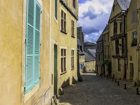 DINAN, BRITTANY, FRANCE, 15 JUNE 2015 - medieval cobbled street and buildings in the city of Dinan, Brittany, France