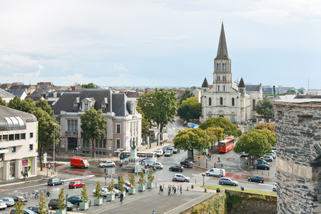 ANGERS, FRANCE - JULY 28, 2014: view of Place du President Kennedy, Place de L'Academie and St Laud's Church in Angers, France. Angers is city in western France and it is capital of province of Anjou