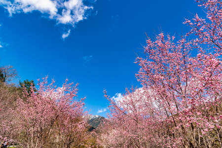 Himalayan Cherry (Prunus cerasoides) blooming at pang khon mountain Chiang Rai, Thailand