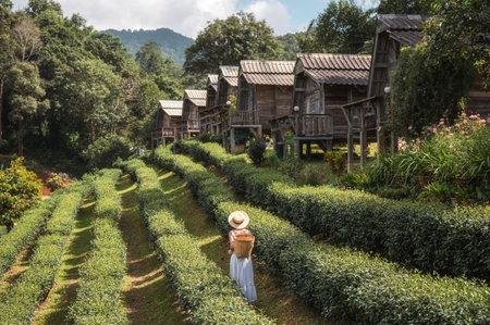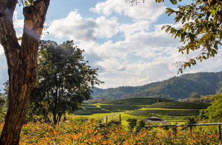 Tea plantation beautiful landscape famous tourist attraction at Doi at Doi Ang Khang, Chiang Mai, Thailand