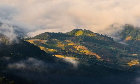 The morning mist at Pa Bong Piang rice field in Chiangmai, Thailand