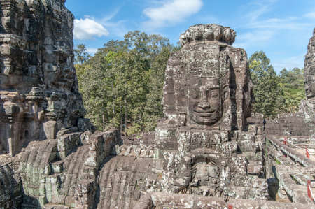 Famous faces of Bayon, the most notable temple at Angkor Thom, Cambodia