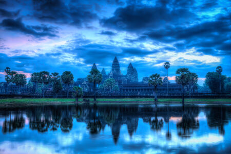 High dynamic range (hdr) image of Angkor Wat - famous Cambodian landmark - on sunrise. Siem Reap, Cambodia