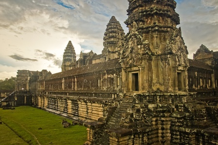 Ancient architecture and ruins of Angkor Wat early in the morning