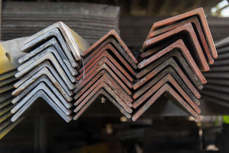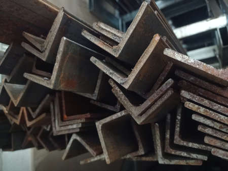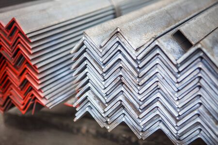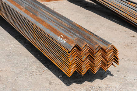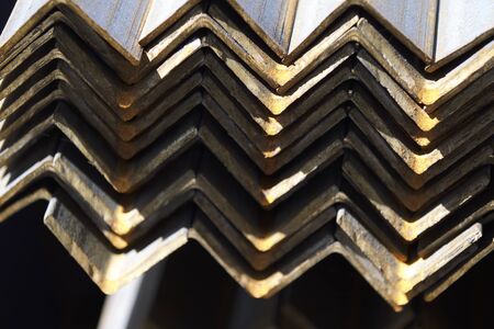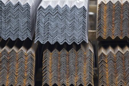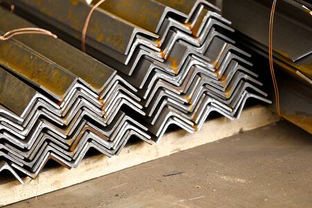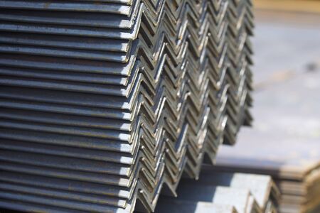 Rolled metal. Stack of angle steel in the factory. L-profil.