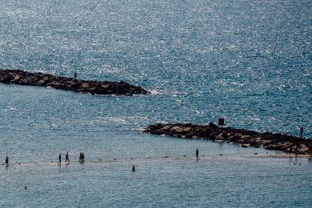 Tel Aviv cost line with tourist and swimming season. Many people on the beach summer and tourist season.