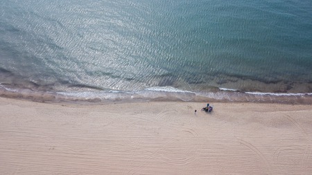 Shoreline photographed from drone. Sea and sand