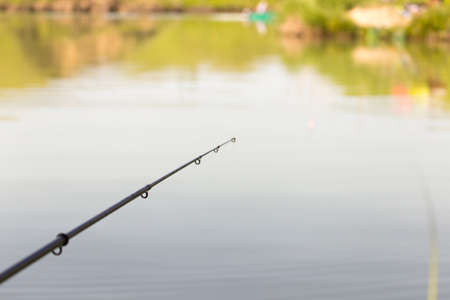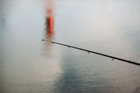 fishing rod on water background closeup.