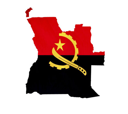 Republic of Angola map flag vector silhouette illustration isolated on white background. National symbol flag of Angola over map.