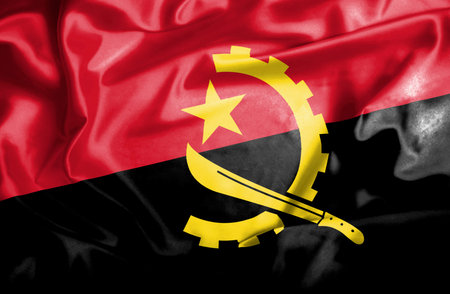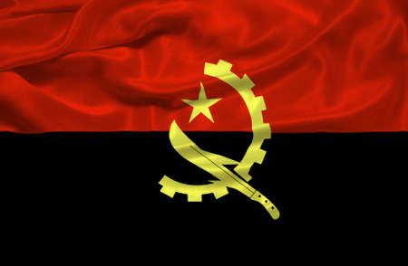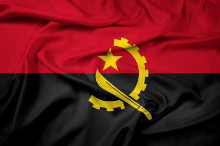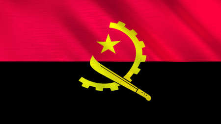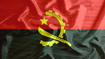 Angolan flag with fabric texture. Realistic flag of Angola waving, National flag