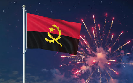 AI Generative The national flag of the independence of the state of Angola, background of fireworks
